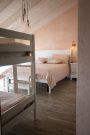Il letto matrimoniale invita al riposo, mentre il pratico letto a castello è pensato per i più piccoli, regalando loro un angolo speciale tutto per sé. Le travi a vista e i dettagli dai toni delicati rendono questa stanza un rifugio perfetto dopo una giornata trascorsa a esplorare la bellezza di Venezia e della Riviera del Brenta.